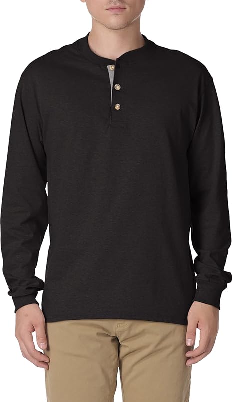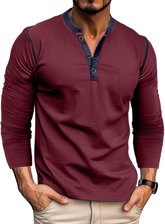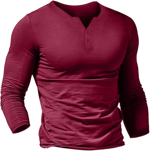 Men's Henley Shirts Casual Basic Long Sleeve T-Shirt Classic Button Solid Lightweight Cotton Pullover Tees Tops