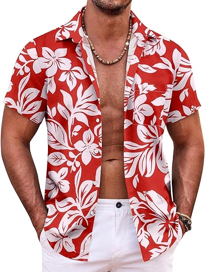 Mens Hawaiian Shirt Short Sleeve Button Down Shirts Tropical Summer Beach Shirts Casual Floral Aloha Shirts