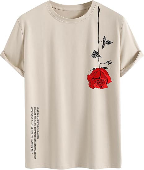 Men's Graphic Tees Floral Print Short Sleeve Crew Neck Vintage Tee Shirt Casual Summer Tee Tops