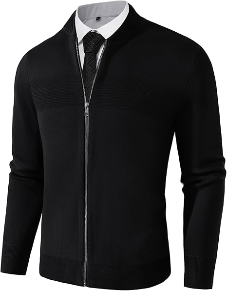 Mens Full Zip Cardigan Sweater Stand Collar Regular Fit Knit Sweaters