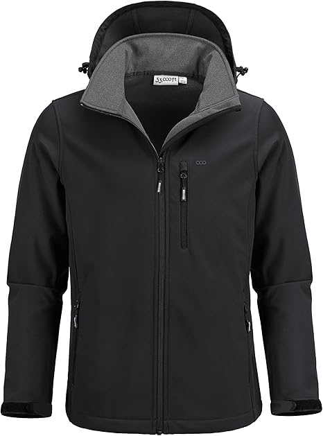 Men's Softshell Jacket with Hood Fleece Lined Windbreaker Lightweight Waterproof Jackets for Hiking