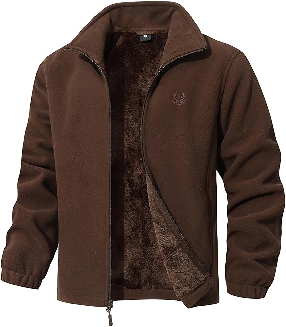 Men's Winter Outdoor Coat Full-Zip Heavy Fleece Jacket Warm Soft Fuzzy Winter Coat Sweatshirt with Pockets