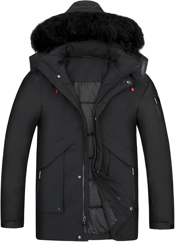 Men's Warm Parka Jacket Water Resistant Ski Jacket Long Winter Coat with Detachable Hood Faux-Fur Trim