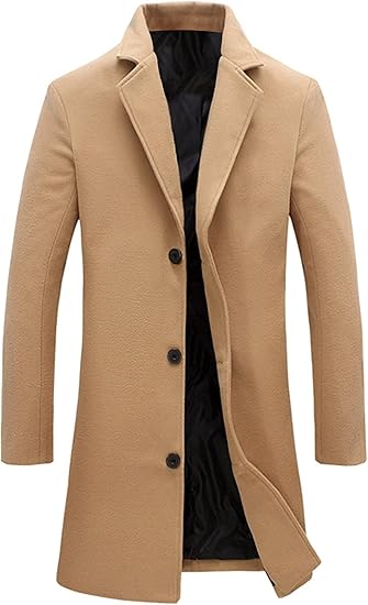 Men's Wool Blend Pea Coat Notched Collar Single Breasted Overcoat Warm Winter Trench Coat