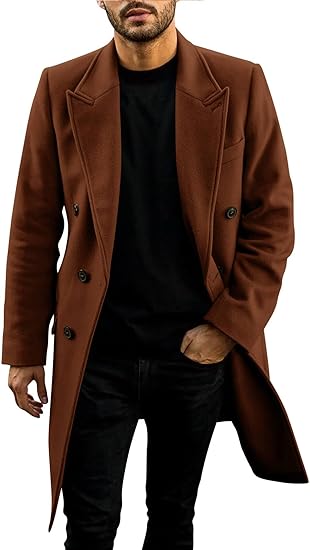 Mens Trench Coat Mid Long Double Breasted Slim Fit Peacoat Notched Lapel Winter Business Overcoat