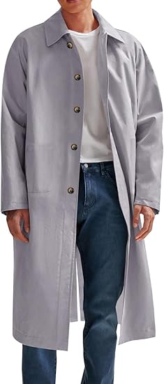 Mens Trench Coat Casual Single Breasted Long Jacket Lightweight Cotton Overcoat