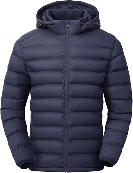 Men's Big and Tall Lightweight Puffer Jacket Quilted Warm Winter Coat Windproof Winter Jackets with Hood