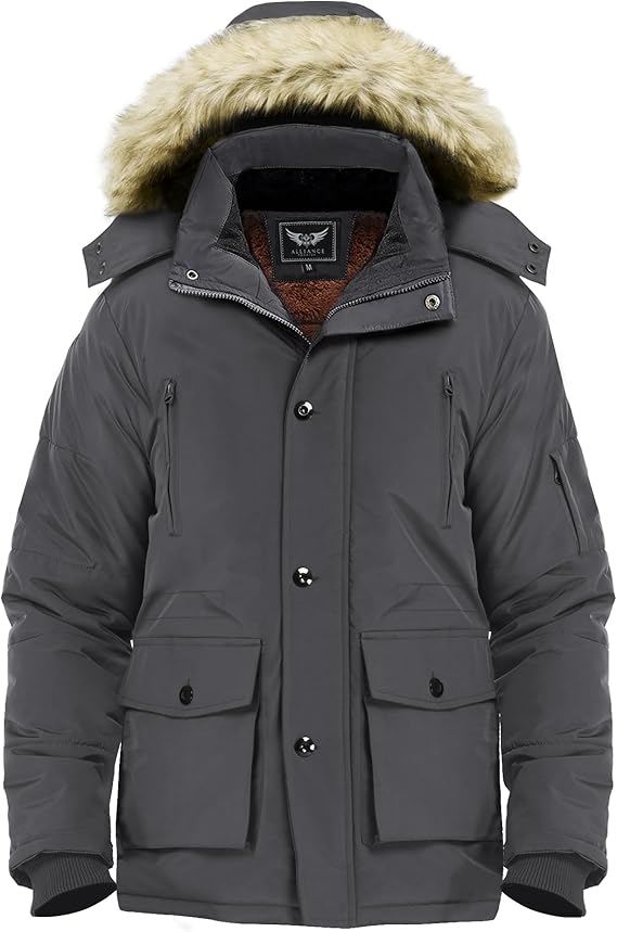Men's Warm Parka Ski Jacket Water Resistant Puffer Jacket Long Winter Coat with Detachable Hood Faux-Fur Trim